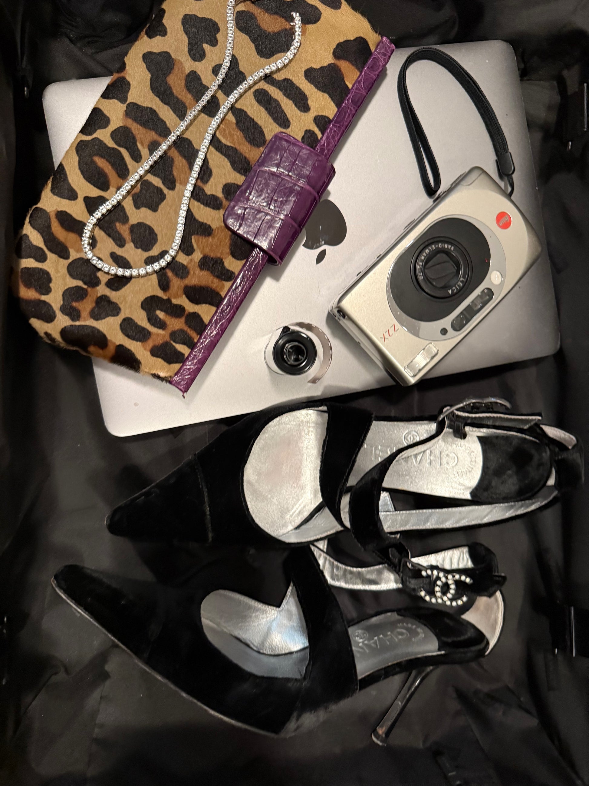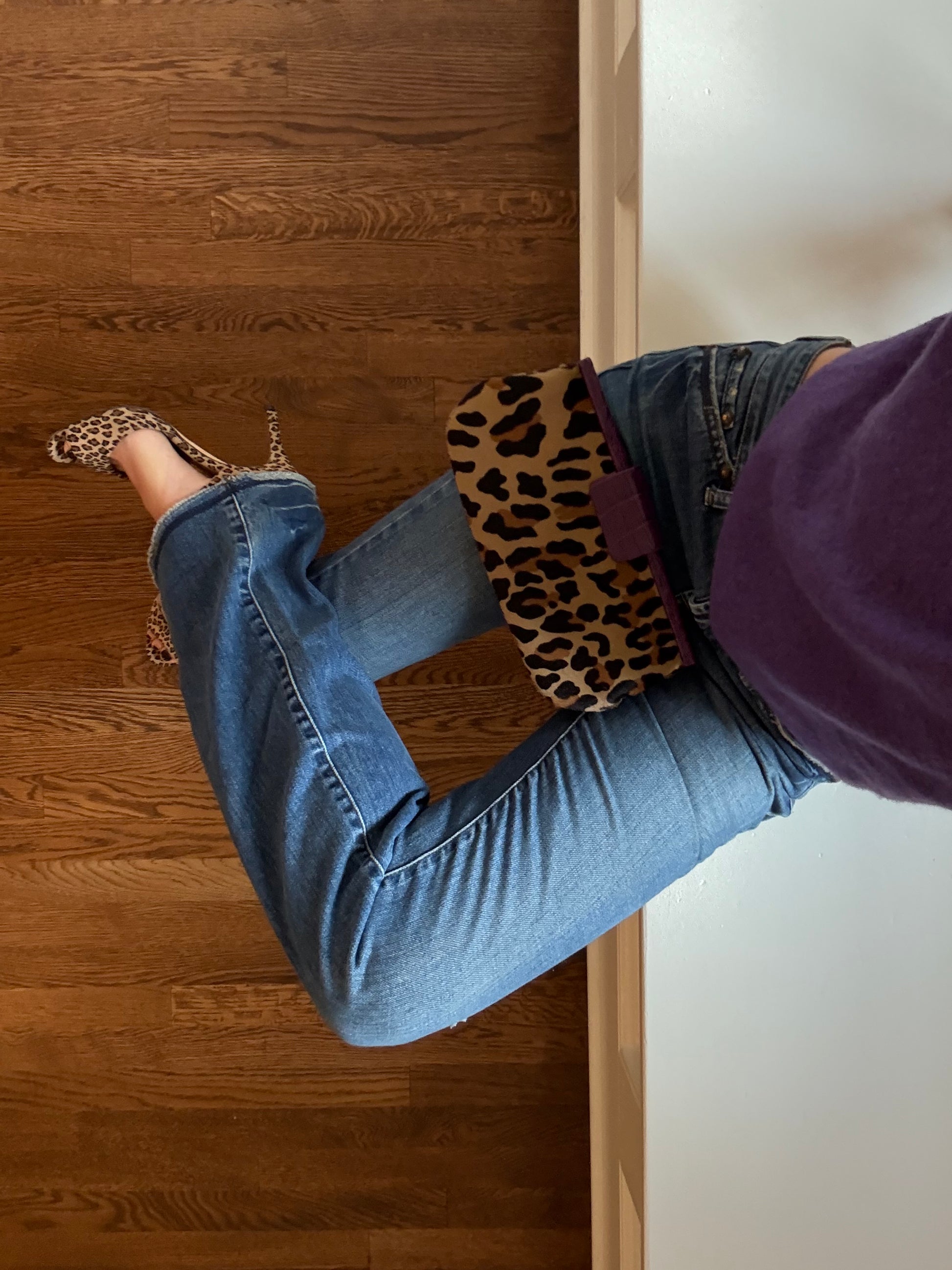 Leopard Pony Hair Bag with Purple Crocodile Detailing and a magnetic closure
