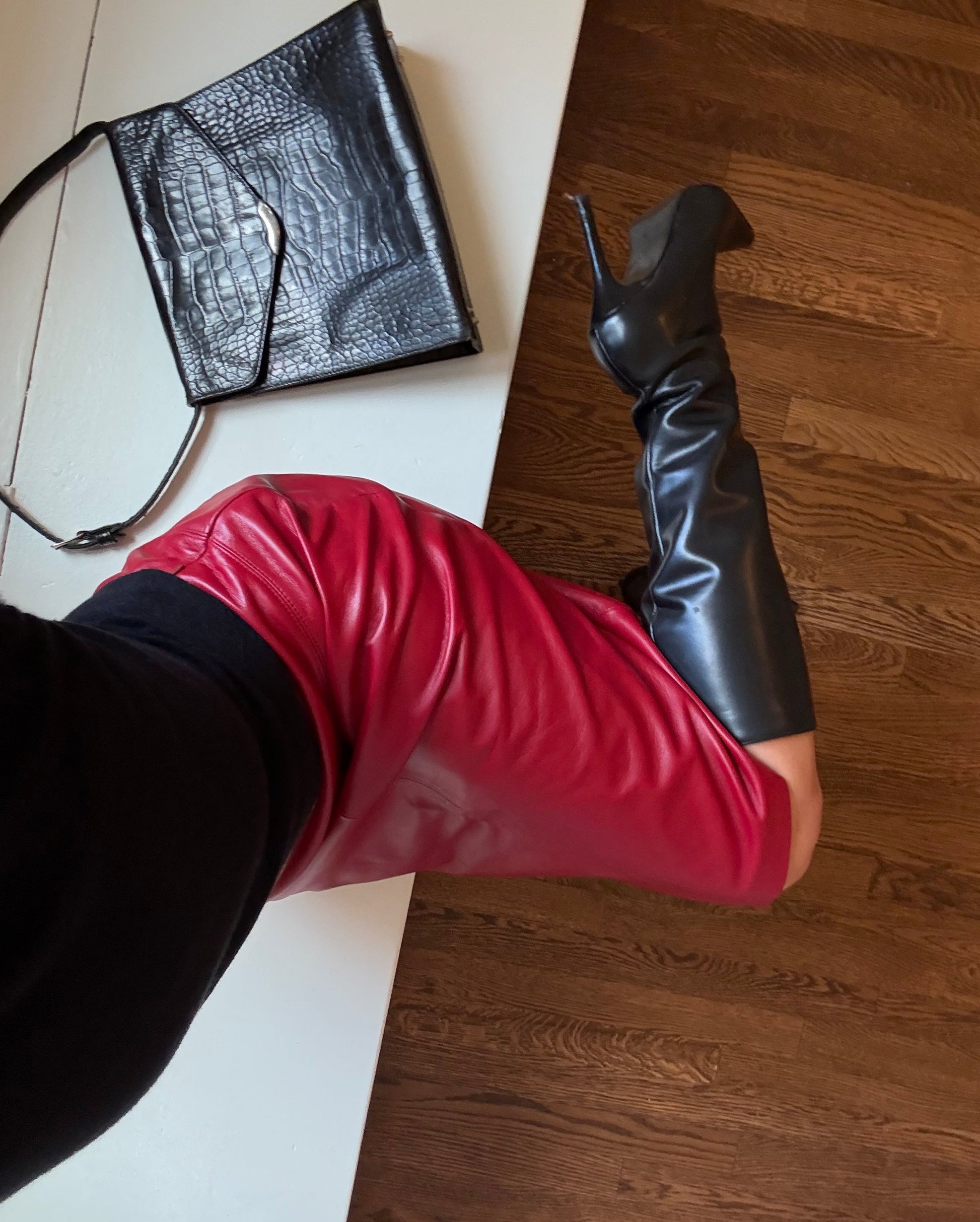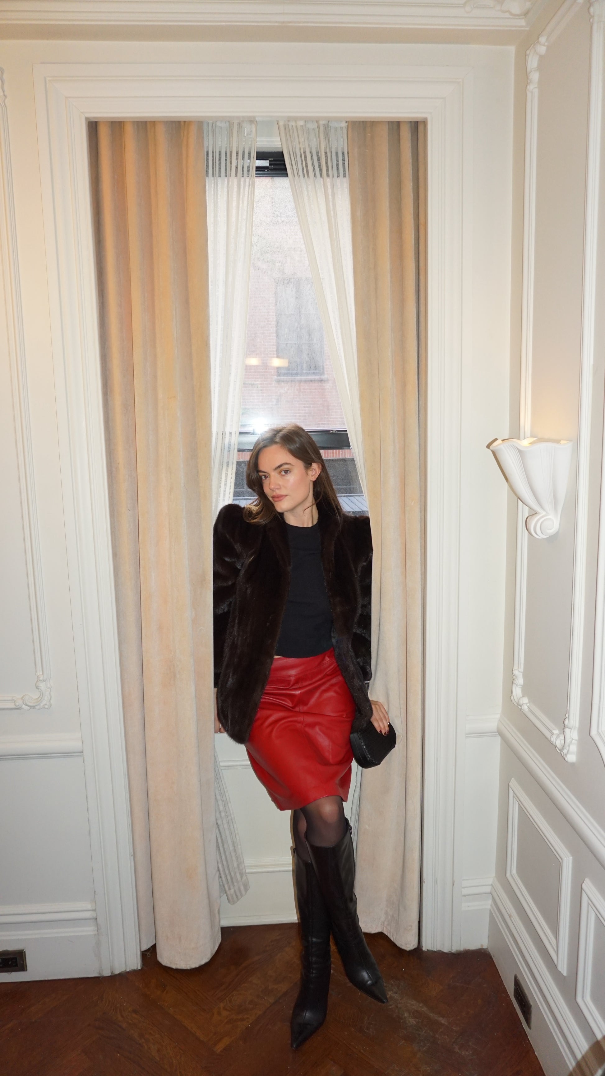 90s Red Leather Ralph Lauren Skirt with Back Slit